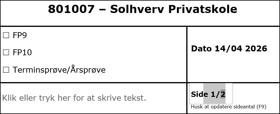 Bemærk at dokumentet er to sider. Forsiden er låst, så der kun kan skrives i de felter, du skal udfylde.